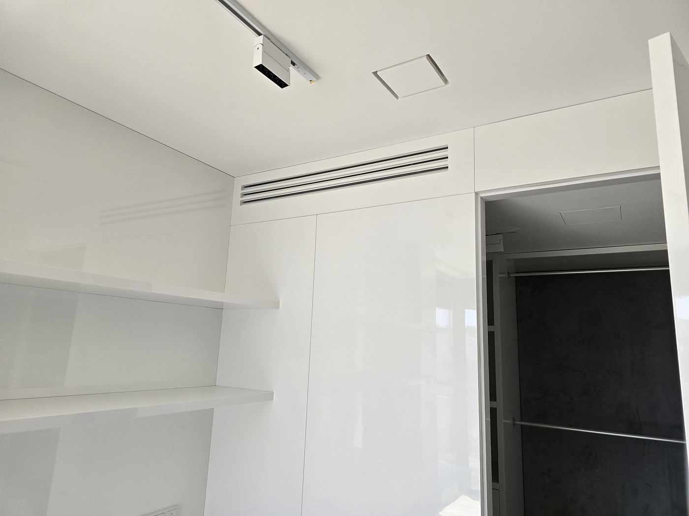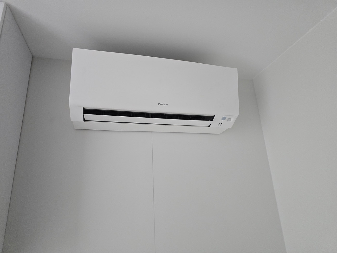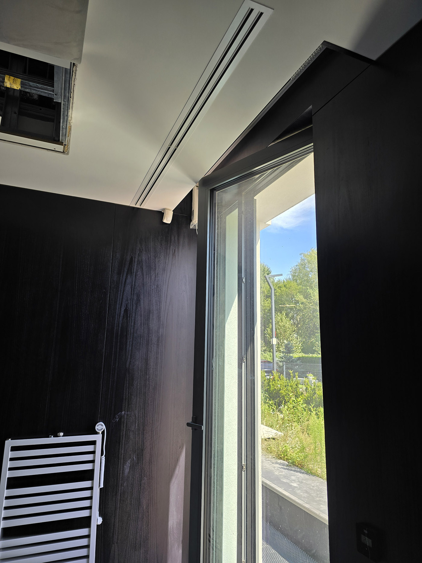 Zrealizowaliśmy to w oparciu o system Daikin VRV 5-S (jednostka zewnętrzna RXYSA6AY1) oraz technologię nawiewników szczelinowych gipsowych. To rozwiązanie montażowe z „najwyższej półki”, pozwalające na uzyskanie efektu bezramkowego.
