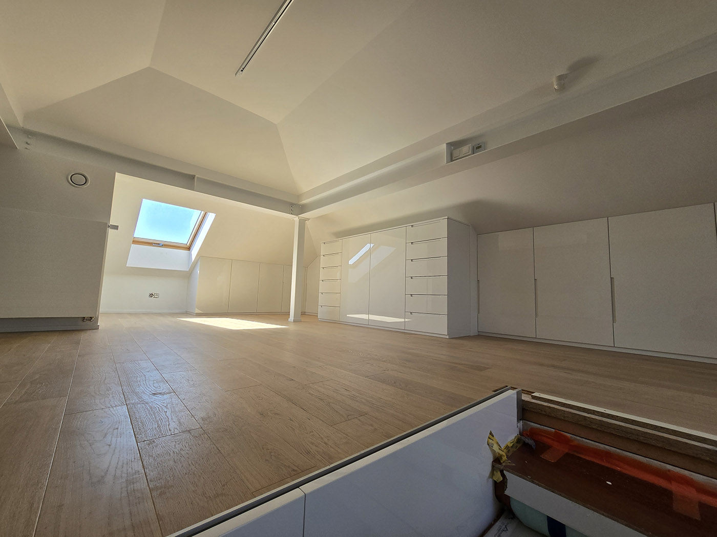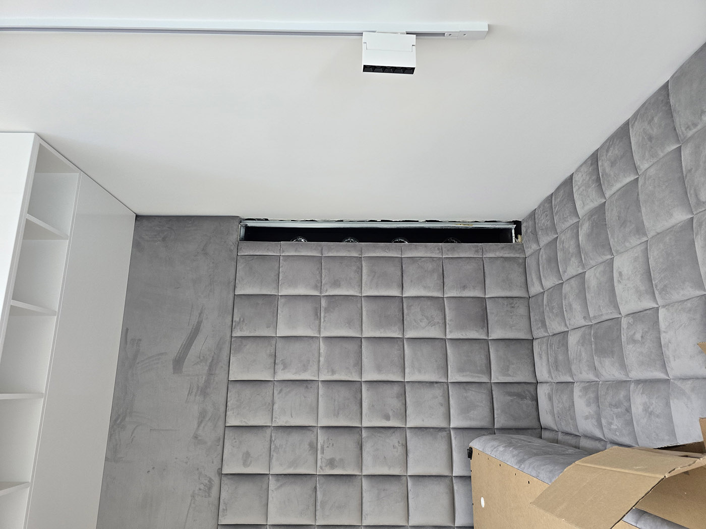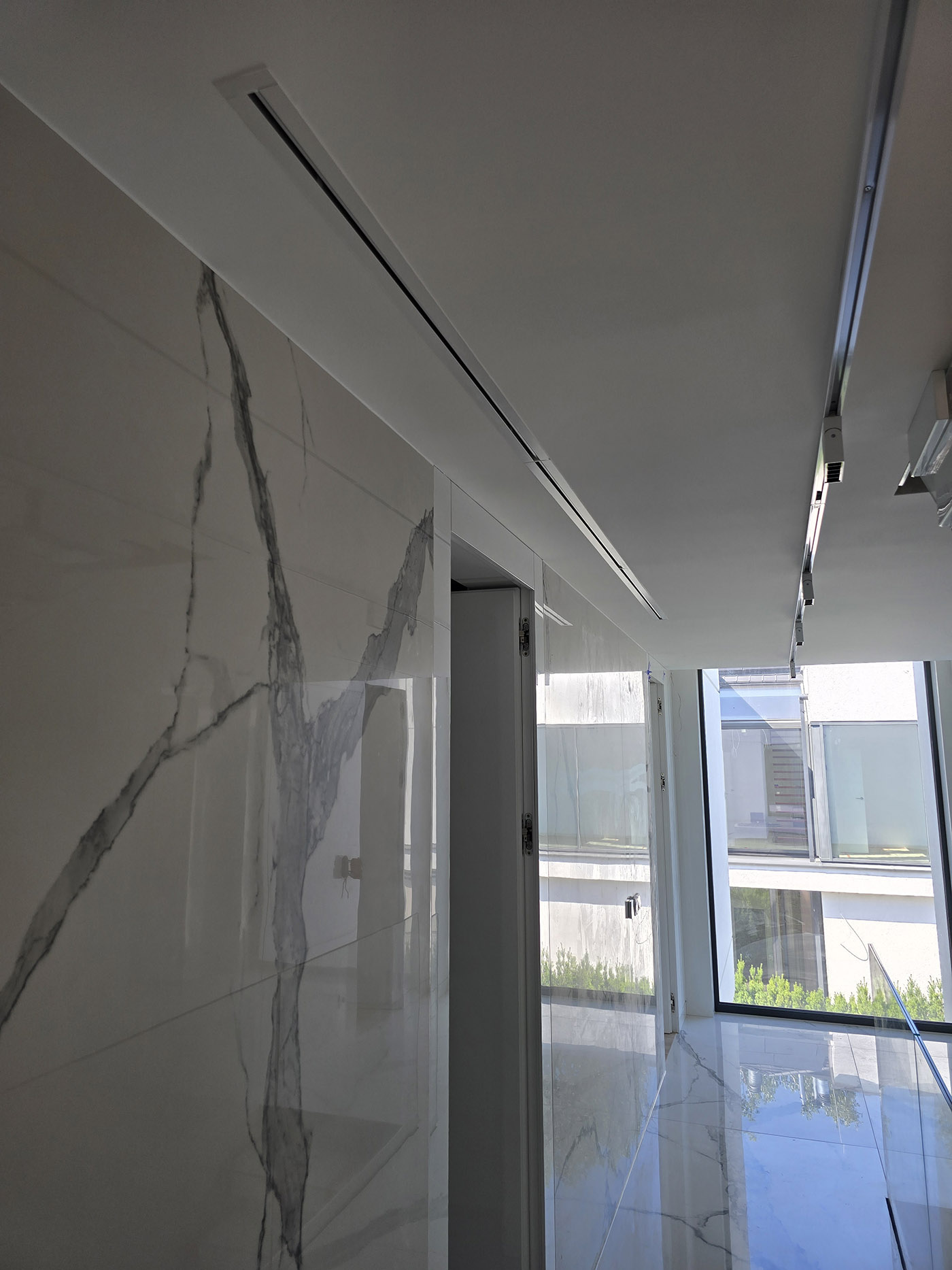 Zrealizowaliśmy to w oparciu o system Daikin VRV 5-S (jednostka zewnętrzna RXYSA6AY1) oraz technologię nawiewników szczelinowych gipsowych. To rozwiązanie montażowe z „najwyższej półki”, pozwalające na uzyskanie efektu bezramkowego.