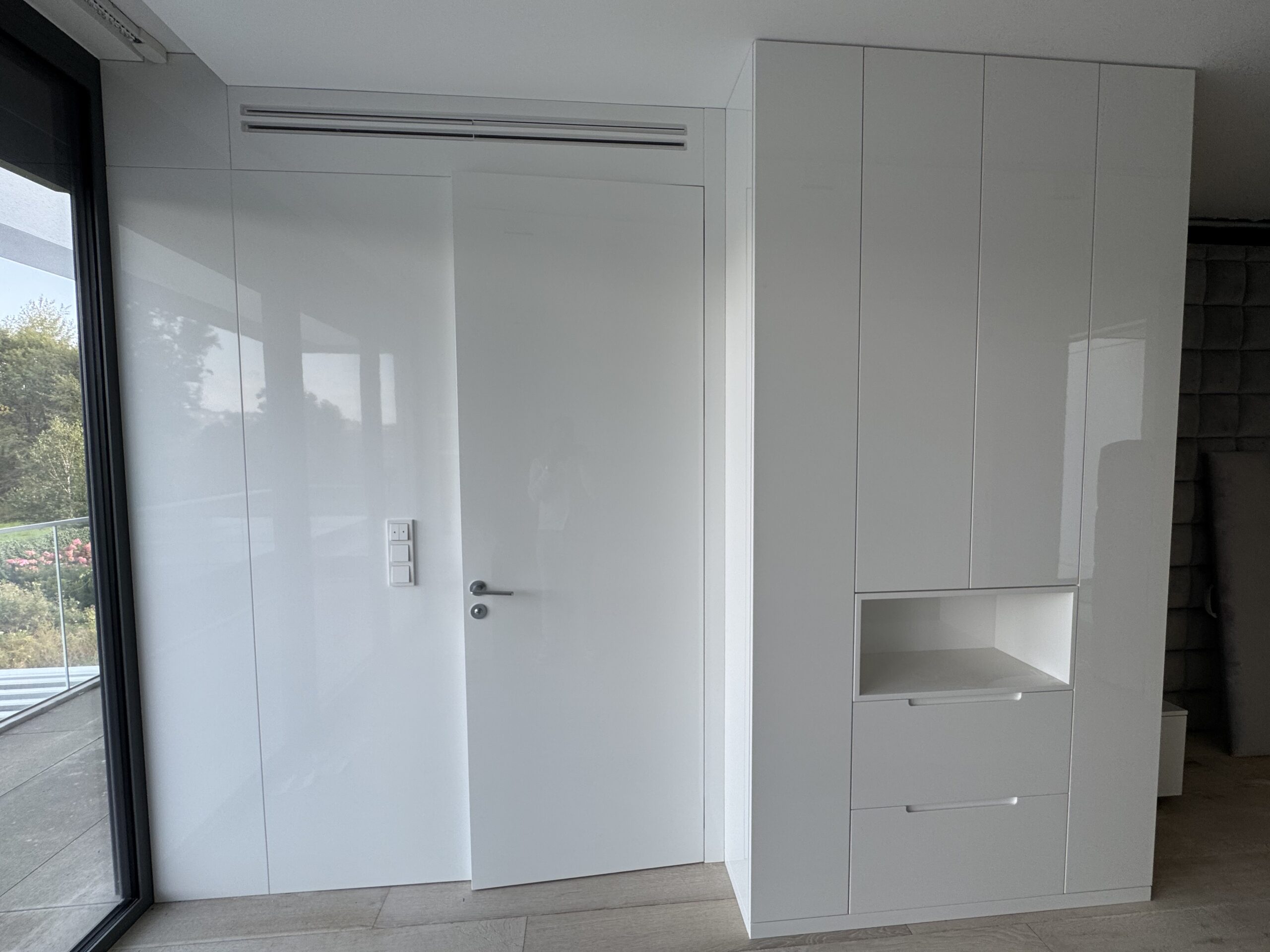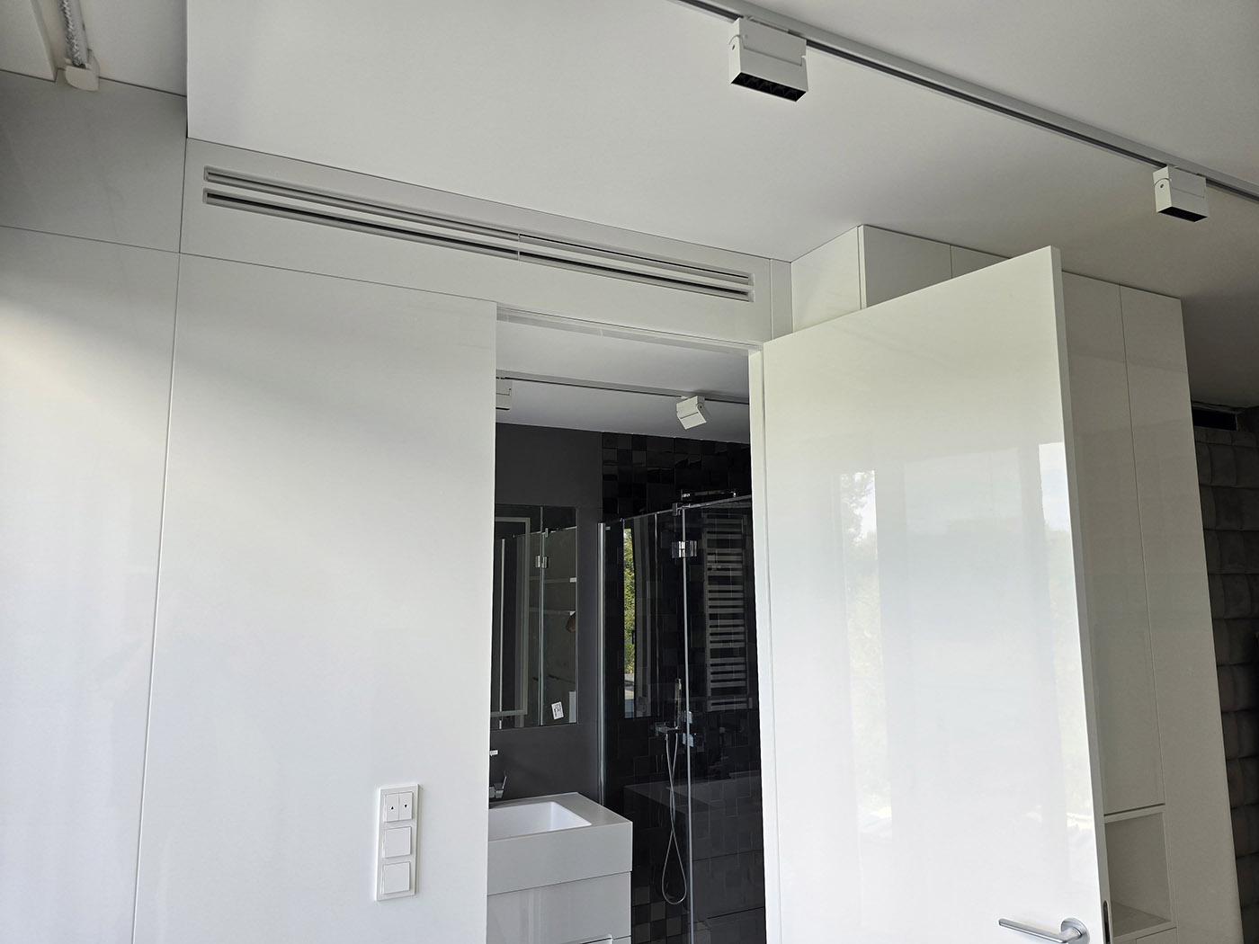 Efektem jest sufit, w którym widać jedynie minimalistyczną linię (szczelinę), z której wydobywa się powietrze. Brak ramek, brak kratek – pełna integracja z architekturą.
