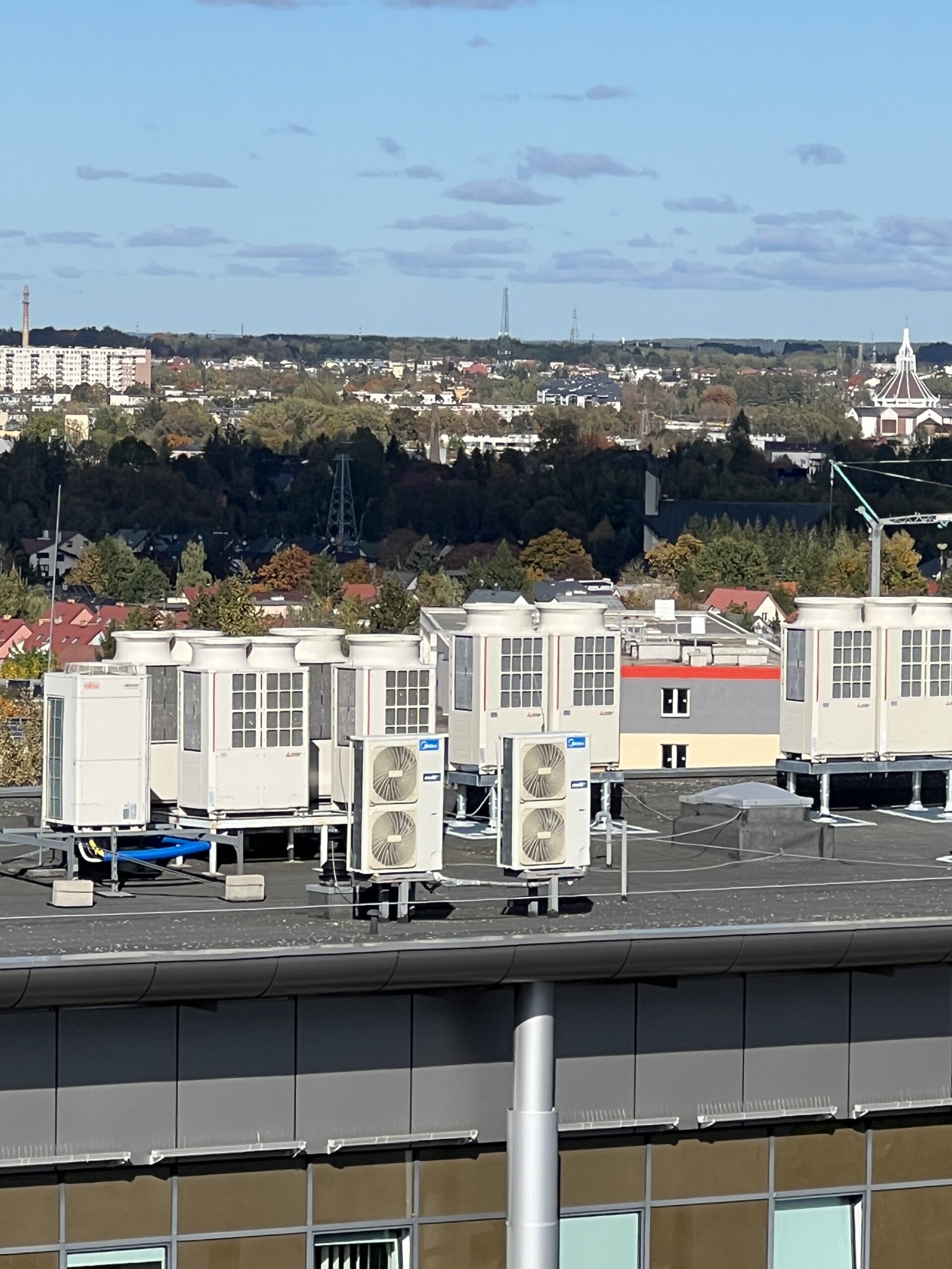 Wyzwanie: kompleksowe zaprojektowanie i wykonanie systemu klimatyzacji dla nowoczesnego obiektu użyteczności publicznej o powierzchni 12 000 m², składającego się z 5 segmentów i 5 kondygnacji