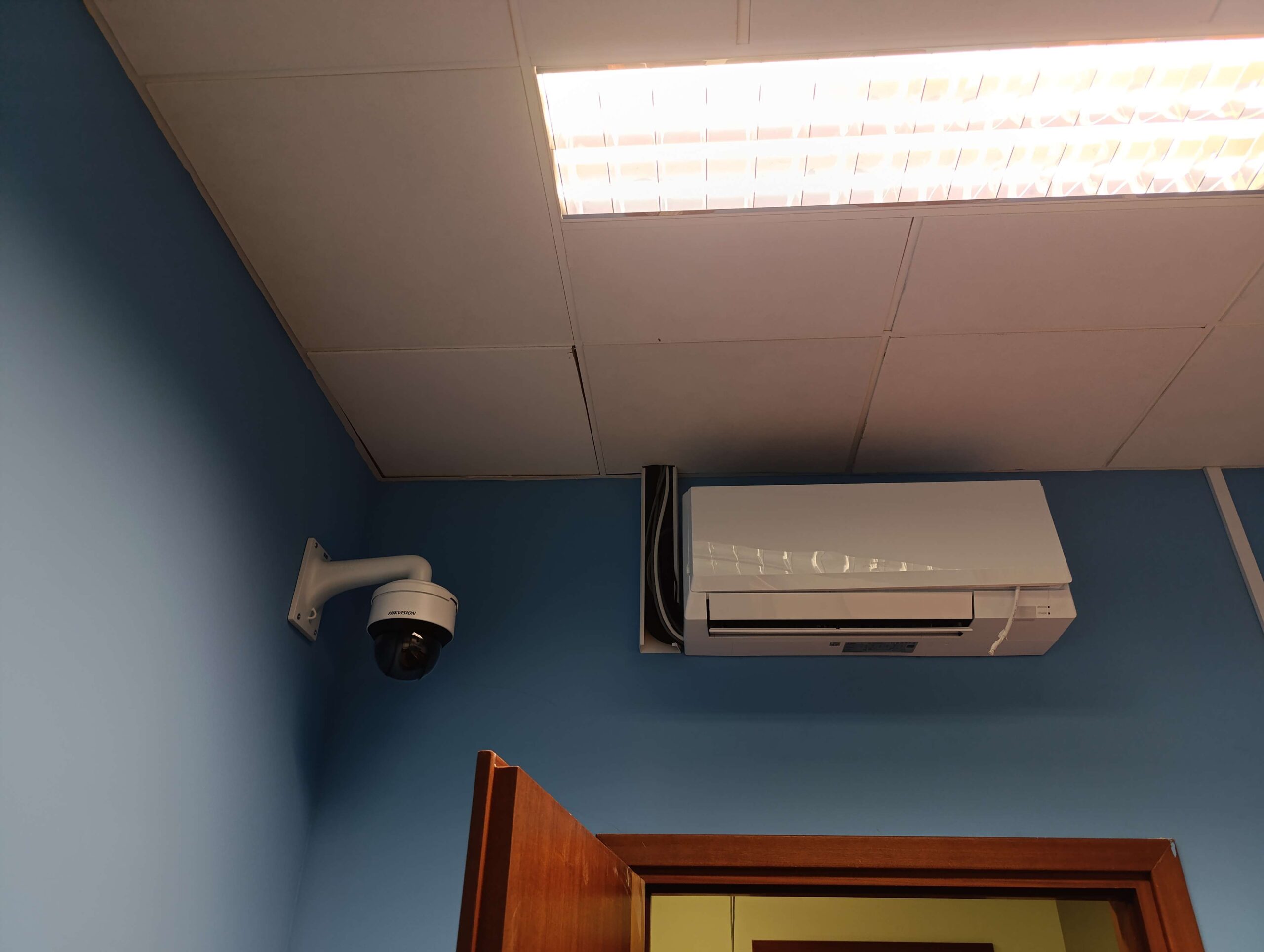 - W przestrzeniach biurowych i salach rozpraw, gdzie kluczowa była estetyka i cisza, zastosowaliśmy dyskretne jednostki kasetonowe 4-stronne serii PLFY (model M25VEM-E), które idealnie integrują się z sufitami podwieszanymi.