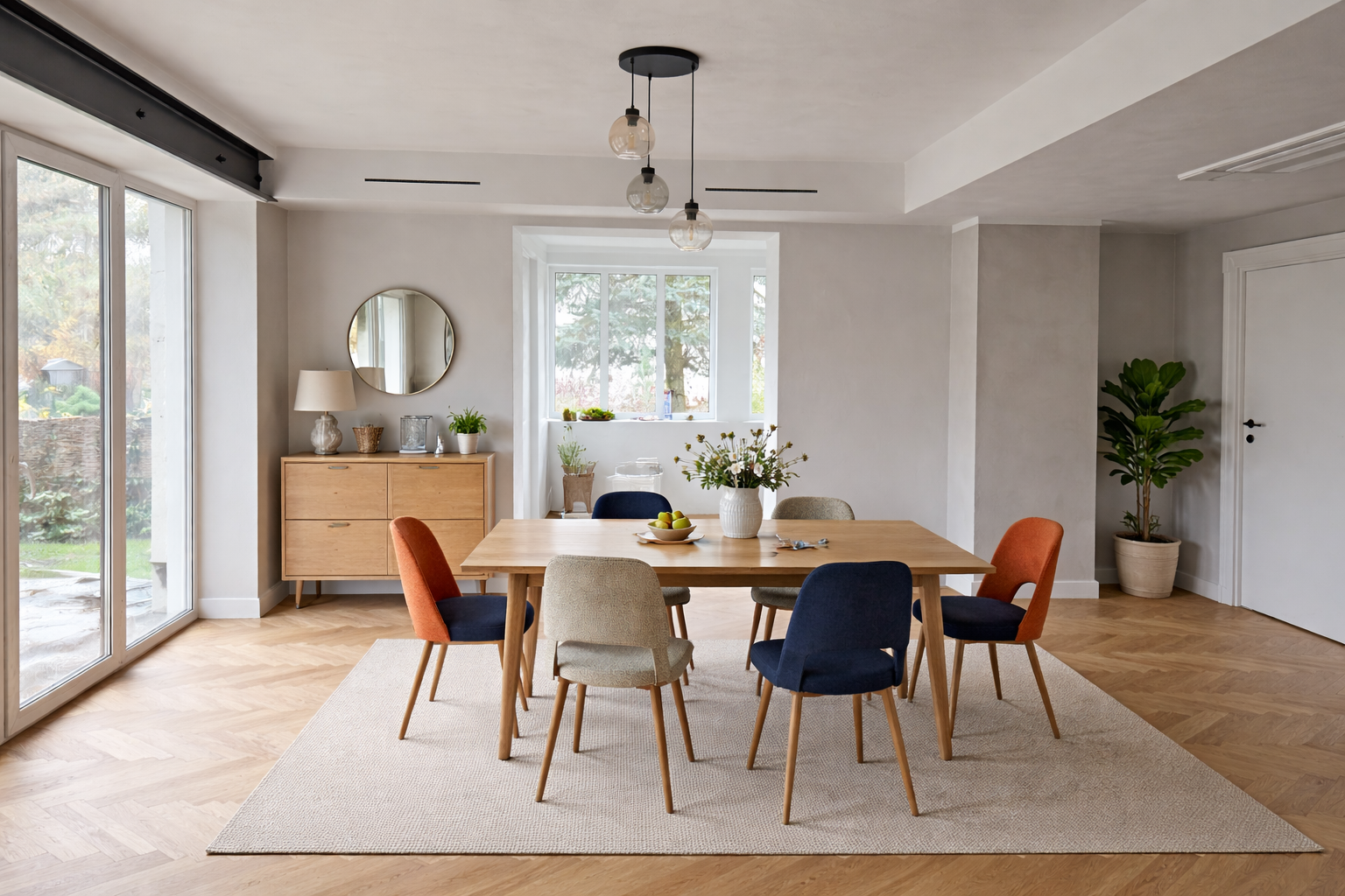 1. Klimatyzacja (Sztuka doboru): System VRF oparty na Mitsubishi Electric CityMulti to popis możliwości aranżacyjnych. Nie ograniczaliśmy się do jednego typu urządzeń – dobraliśmy je idealnie do charakteru każdego pomieszczenia, wykorzystując pełną gamę jednostek wewnętrznych: